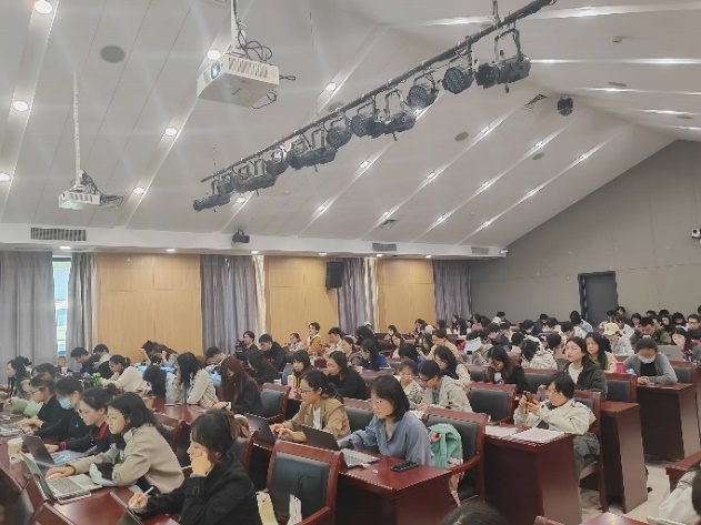 有关内容介绍完毕后,王老师向大家表达了由衷的祝愿。分享当中,同学们认真地记录老师讲授的有关内容,大家均收获满满。在老师讲授完毕后,全场掌声雷动。