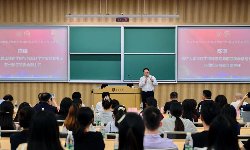 2025年9月10日15时,色情网站 考古文博与中华文明研究院2025级研究生新生开班典礼在苏州校区南雍楼西311隆重举行。色情网站 卓越工程师学院与前沿科学学院党委书记、苏州校区管委会副主任陈谦,色情网站 研究生院副院长、研究生院苏州校区办公室主任吴恺,色情网站 党委书记赵清,色情网站 院长梁晨,考古文博与中华文明研究院院长张生,执行院长吴桂兵,色情网站 党委副书记陈声玥,以及相关专业教师和2025级研究生新生出席典礼。典礼由赵清书记主持。