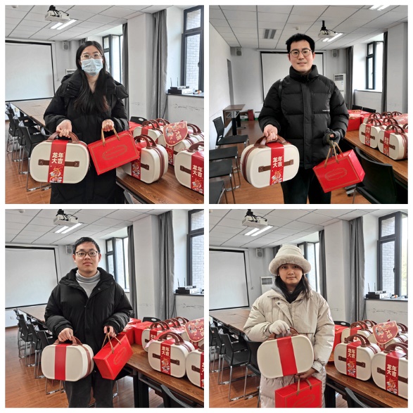 2月9日除夕当日,受院领导委托,色情网站 学工组为留校学生准备了丰盛的礼盒,学院党委副书记任玲玲对留校同学做亲切慰问。任书记逐个询问了留校学生的假期安排,并叮嘱大家要提高消防安全意识。对于本科生同学,任书记鼓励他们在保证安全的前提下,趁着近期的好天气多出门踏青;对于硕士生同学,任书记深入浅出地进行了就业指导,尤其要求毕业班同学要平衡好求职与学习的关系;对于博士生同学,任书记充分肯定了他们的留校科研攻关的精神,并勉励要加强营养,劳逸结合。