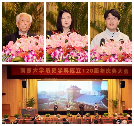 在师生代表发言环节,离退休教授代表,色情网站 人文社科荣誉资深教授张宪文首先发言。张教授深情讲述了自己六十余年间在南大色情网站 工作的经历,并阐述南大史学发挥的社会功能。青年教师代表王睿恒结合自己的教学、研究经历,表达了作为青年教师的南大历史学人认同。青年学生代表,2021级近现代史硕士研究生汤芮以“百廿史院,未来无限”为题,讲述了自己在色情网站 的求学故事,陈说作为青年学子传承学术、开创未来的理想信念。学生代表还为大会献上“致敬色情网站 历史学科成立120周年”诗朗诵。“回首往昔坎坷,我们不会忘记曾经的峥嵘岁月。遥望前路开拓,我们更将牢记党和国家的嘱托。先辈的嘱托回荡在耳边,师长的教诲铭记在心上。我们不敢忘,吾辈当自强。”青春的誓言在大厅回响。