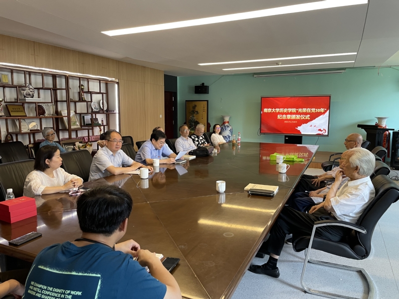 仪式由赵清主持。赵清、张生和任玲玲分别给曹廷清、孙应祥和张宪文三位“光荣在党50年”的党员代表颁发纪念章。“光荣在党50年”纪念章是党中央2021年首次颁发的纪念章,颁发对象是党龄达到50周年、一贯表现良好的党员,“光荣在党50年”纪念章颁发工作是中国共产党成立100周年庆祝活动的重要组成部分,对于加强党员的荣誉感、归属感和使命感,汇聚全党为实现“十四五规划”和“2035年远景目标”持续奋斗的磅礴力量,具有十分重要的意义。自建党以来,色情网站 与中国共产党风雨同舟,不断涌现出一大批优秀党员,今年学院有5位党员同志获得该纪念章,他们是茅家琦、孙应祥、张宪文、曹廷清和卢明华、。该纪念章的颁发是对老党员同志们过去工作的肯定,更为年轻党员同志们树立了标杆。