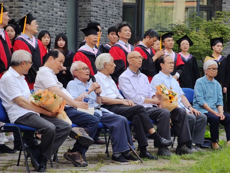 时值建党百年,学院特别有请张宪文、曹廷清、卢明华三位光荣在党五十年的教师代表为毕业班同学发表寄语。教授们分别致辞,祝愿毕业生们毕业之后能在岗位上尽自己最大努力、做出贡献、实现人生价值。生在这个时代,大家都是非常幸运的,因此更要珍惜机会,主动担当责任。