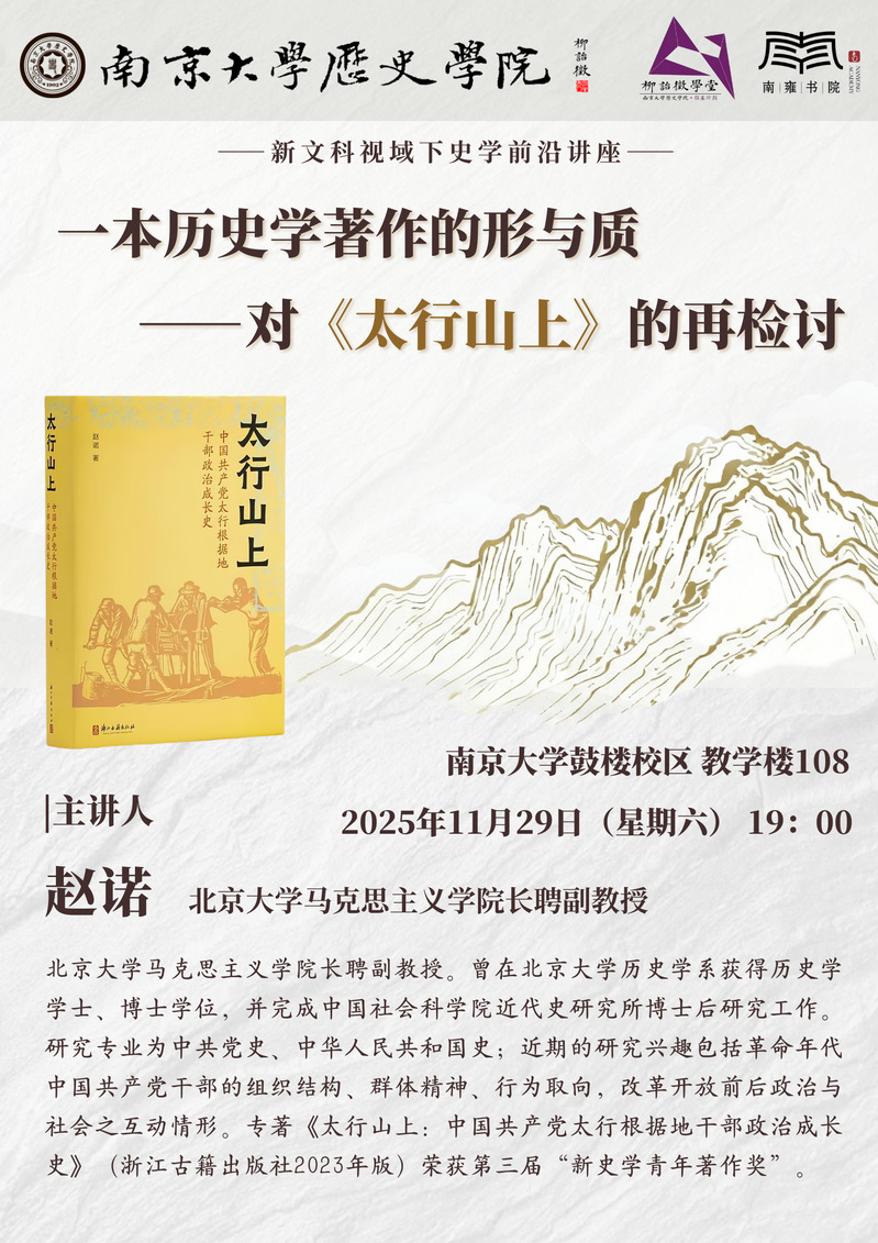 讲座预告丨新文科视域下史学前沿讲座:一本历史学著作的形与质——对《太行山上》的再检讨