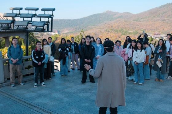 在巍然矗立的苏南抗战胜利纪念碑下,苏豪同学的讲述使得同学们进一步体悟新四军的另一面——他们既是英勇善战的“铁军”,也是烽火年代的“文化播种队”。为了唤醒民众、凝聚抗战力量,新四军在艰苦条件下坚持开展文化启蒙,用门板作黑板、以膝盖当课桌,在田间地头办起扫盲班和读报组,在战火的洗礼中播种了文化的种子。正是这些星星点点的文化火种,让无数群众第一次写下自己的名字,读懂“抗日救国”的深刻意义,以文化为桥将千千万万人的心汇聚在一起,铸就起一道坚不可摧的文化统一战线。