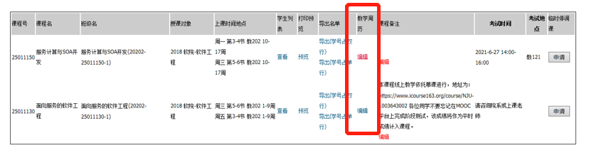 课程教学大纲原则上应在开学前填好,便于学生根据大纲内容进行选课。教学周历可根据课程设置随时进行维护。学期结束,周历将不能调整。