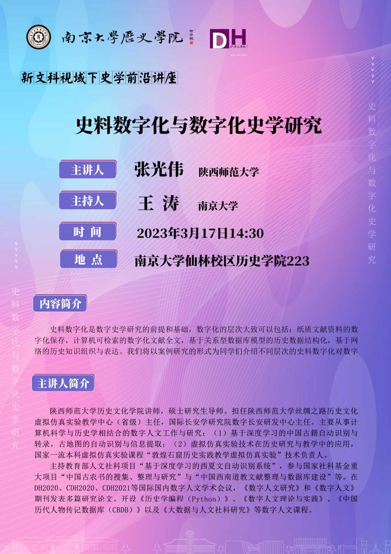 讲座预告 | 史料数字化与数字化史学研究