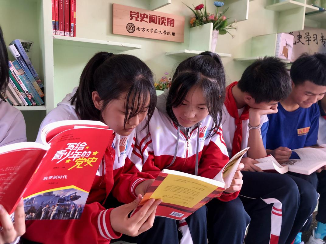 图6 学生在党史阅读角阅读青少年党史读物