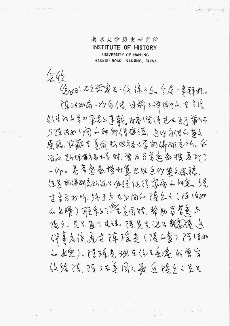 两位老师嘱托的事作为学生自然是义不容辞,我随即就按照陆久之先生提供的地址,于7月23日给陈瑶光女士写了一封信。信中首先自我介绍一番,并说自台湾《传记文学》刊载您母亲的回忆录之后,引起学界极大的重视,而这份回忆录的英文原稿现存于美国斯坦福大学胡佛研究所,美国伊利诺伊大学的易劳逸教授为了让世界上更多的人了解这段历史,计划将其英文原稿在美国出版,但这需要得到家属的同意。他说曾多次去信给您,但一直没有回音,现通过我的老师张宪文教授委托我尽快与您联系。我将我的联络地址和电话都写在信上。我在信中还介绍,易劳逸教授是美国第一流的民国史学者,为人正直,学问渊博,不仅在美国,就是在中国大陆和台湾都享有盛誉,色情网站 历史系主任张宪文教授是易教授的好友,也是国内著名的民国史专家。同时易劳逸教授还再三强调,该书出版后的所有稿酬将全数交给家属,他不会收取任何报酬。