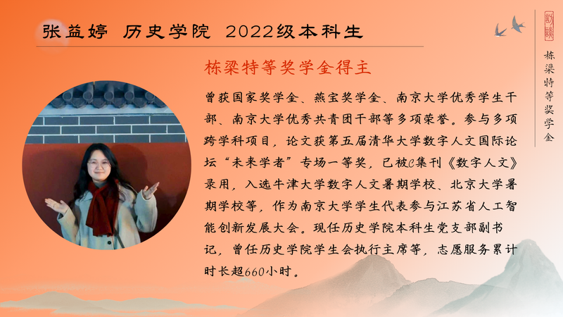 张益婷的大学四年,不是单一项目的叠加,而是在探索中遇见自己的过程。科研、学工、跨界合作,每一次尝试都让她更清楚地理解兴趣、能力和责任的边界。探索从未停止,路径仍在延展,而她也将继续在数字与人文的交汇处前行,用热爱与坚持绘制属于自己的学术地图。
