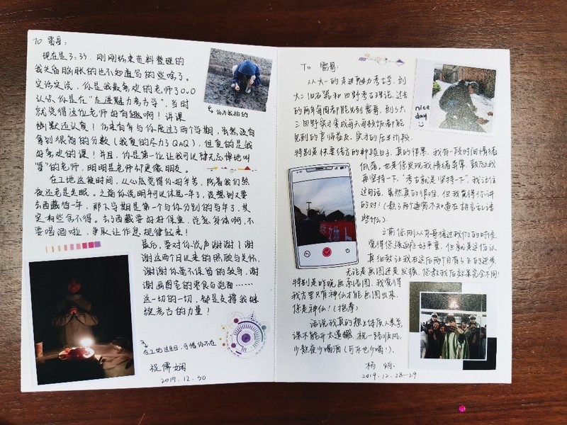 有人说,教师是一件苦差事,除了繁重的教学任务之外,还有很重的科研压力;还有人说,教师像是被套上了一个“紧箍咒”,自己的言行举止处处都要做到“为人师表”。但是,张老师深知身为教师的喜悦,每当看到学生们充满学习欲望的眼神得到了满足,每当得知教学实践得到了学生们的认同,每当听说毕业学生在工作的岗位上发展得很好,他内心的满足感无法言表。从2008年入职至今,张老师一直坚守教学第一线,本科课程量巨大,平均每学年开设五门本科课程,累计授课课时超过4000个学时,而且每年都要带领考古专业的学生到野外进行考古实习教学,累计野外教学天数达到了857天。从湖北大坪遗址、小河墓群到安徽谷阳城遗址、磨盘山遗址,再到河南新砦遗址、辛村遗址,都留下了他和学生们点点滴滴的汗水,也留下了满满的、美好的回忆。因为实习期间,师生的吃、住、教学都在一起,所以老师要有多重身份,不仅仅是教师,还是家长,是朋友。历届学生,都亲切地称呼张敬雷老师为“雷哥”。雷哥也留下来很多“雷言雷语”,比如:“考古人都是处女座,就是要有一些强迫症”、“考古关键时候需要坚持一下”、“不放弃、不抛弃,让每个同学都能坐上考古这班车”、“雷哥是块砖,哪里需要哪里搬”、“学不好就把你们做成标本,我手里的这个颅骨标本就是你们不好好学习的师兄”等等。