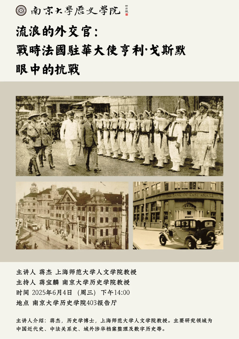 讲座预告丨流浪的外交官:战时法国驻华大使亨利•戈斯默眼中的抗战