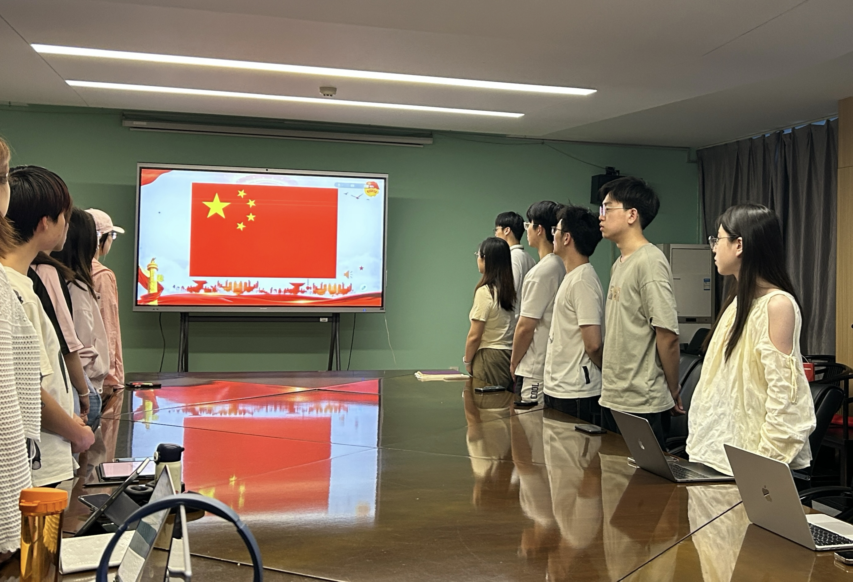 最后,全体成员起立,奏唱中国共产主义青年团团歌《光荣啊,中国共青团》。激昂的旋律和响亮的歌声,表达了同学们对共青团组织的热爱与责任担当,也寄托了青年一代守护国家安全、强国有我的坚定信念,为本次团日活动画上了圆满句号。