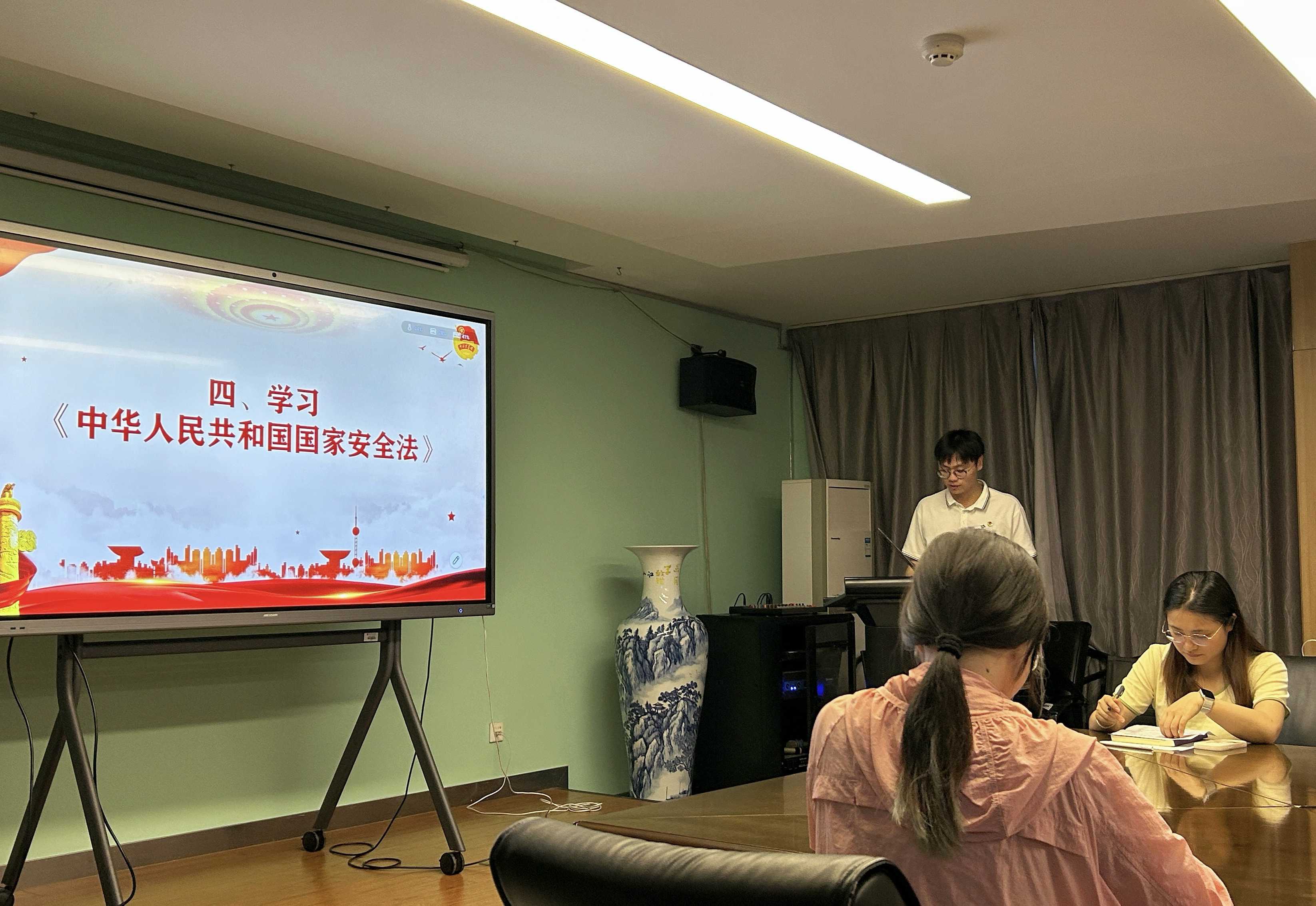 活动第四项,苏豪带领全体团员共同学习《中华人民共和国国家安全法》第一章总则部分。通过学习国家安全相关法律法规,团员们深刻认识到国家安全不仅是国家大事,更与每个人息息相关。青年团员不仅是国家安全的受益者,更是国家安全的守护者,需要将法的精神内化于心、外化于行。