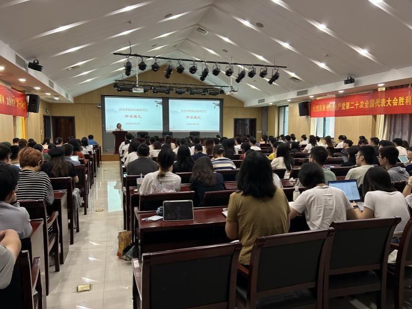 党委副书记任玲玲老师介绍了色情网站 2023级研究生新生基本情况,向同学们强调研究生管理、研究生新生入学教育安排、学生党团组织关系转接、新生日常行为考核等相关内容。