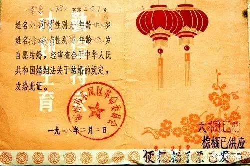 当时的结婚证在今天看来,简直有些不可思议:没有两人的结婚照片,盖着红彤彤的“东风区革命委员会”公章,有东风,有革命,政治色彩够浓吧?还有“计划生育,勤俭持家”八个大字作映衬,既是政策教育,也是人生引导,倒也可以理解。