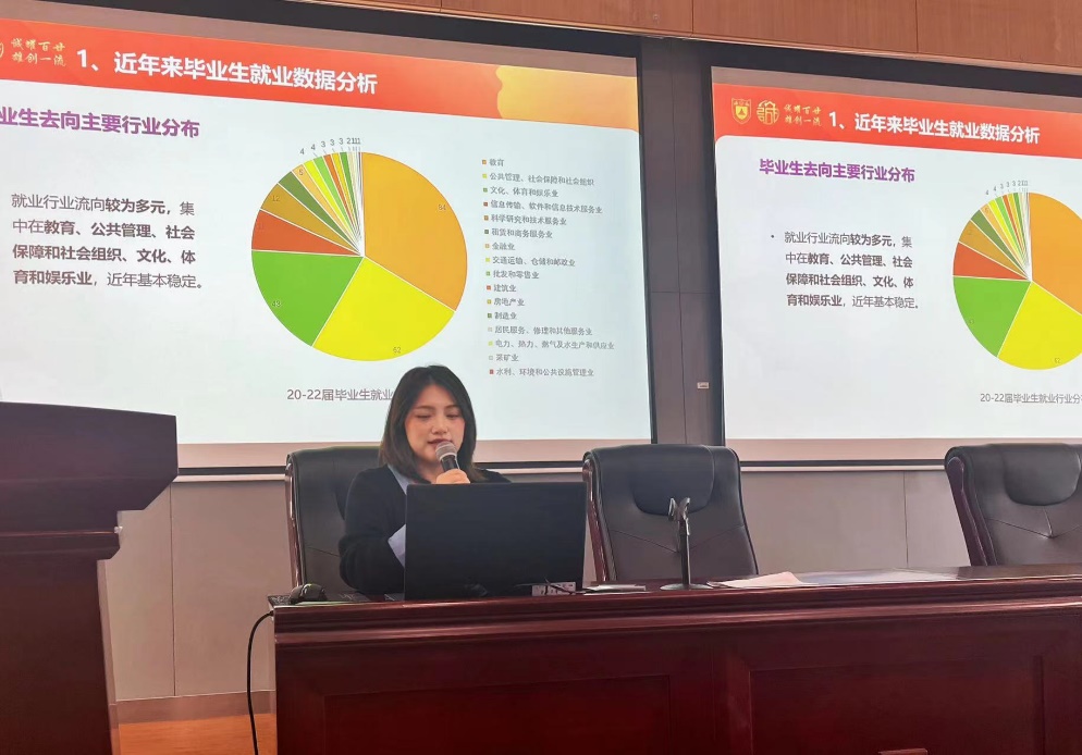 会议伊始,研究生辅导员王恩惠结合相关数据,简要地介绍了近三年来色情网站 硕士毕业生规模、就业情况以及毕业生的去向,按照专业为大家梳理了近三年来毕业生的就业结构与就业选择。还分析了当前毕业生整体就业的形势,王恩惠建议不要过于局限于自己所看的就业圈子里,打开求职新思路,勇于去接触新的东西,多去参加学校举办的宣讲会。