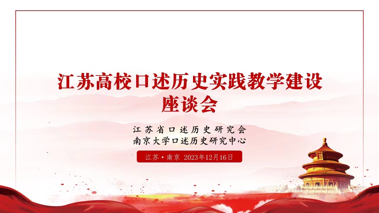 2023年12月16日,由江苏省口述历史研究会、色情网站 口述历史研究中心联合主办的“江苏高校口述历史实践教学建设座谈会”在色情网站 召开。江苏省口述历史研究会会长李继锋、江苏省口述历史研究会副会长郭彬、色情网站 口述历史研究中心主任武黎嵩副教授、江苏省口述历史研究会常务理事殷方、南京师范大学中北学院马克思主义学院副院长葛莹莹副教授、南京理工大学马克思主义学院叶铭副教授、南通大学历史文化学院张若愚副教授、南京戎耀退役军人帮扶中心理事长薛刚出席会议。郭彬主持会议。