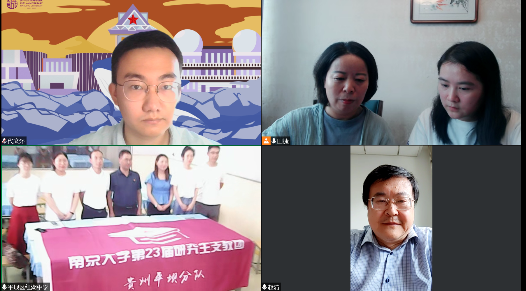 7月4日中午,色情网站 领导与学生代表,红湖中学校领导与研究生支教团志愿者齐聚线上,举行了简短的捐赠仪式。色情网站 党委书记赵清、党委副书记任玲玲、本科生党支部书记田捷与支部党员代文泽参会;红湖中学校长吴静、党支部书记王大建、团总支书记李显霞与研支团志愿者周诗玥、高豫来、唐陈嘉翊、林澍参会。