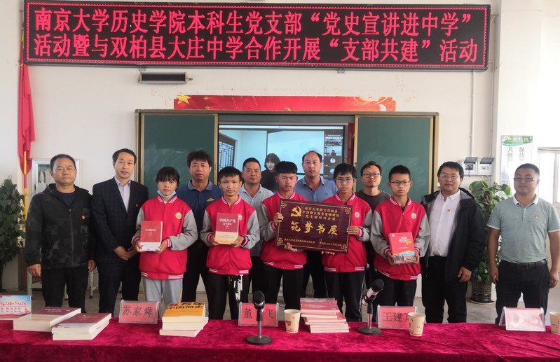 为迎接党的百年华诞,深化党史学习教育,助力贫困地区教育发展,在世界读书日到来之际,色情网站 本科生党支部与双柏县大庄中学开展支部共建“筑梦书屋”暨“党史宣讲进中学”活动,持续做好脱贫攻坚成果巩固与乡村振兴的下半篇文章。