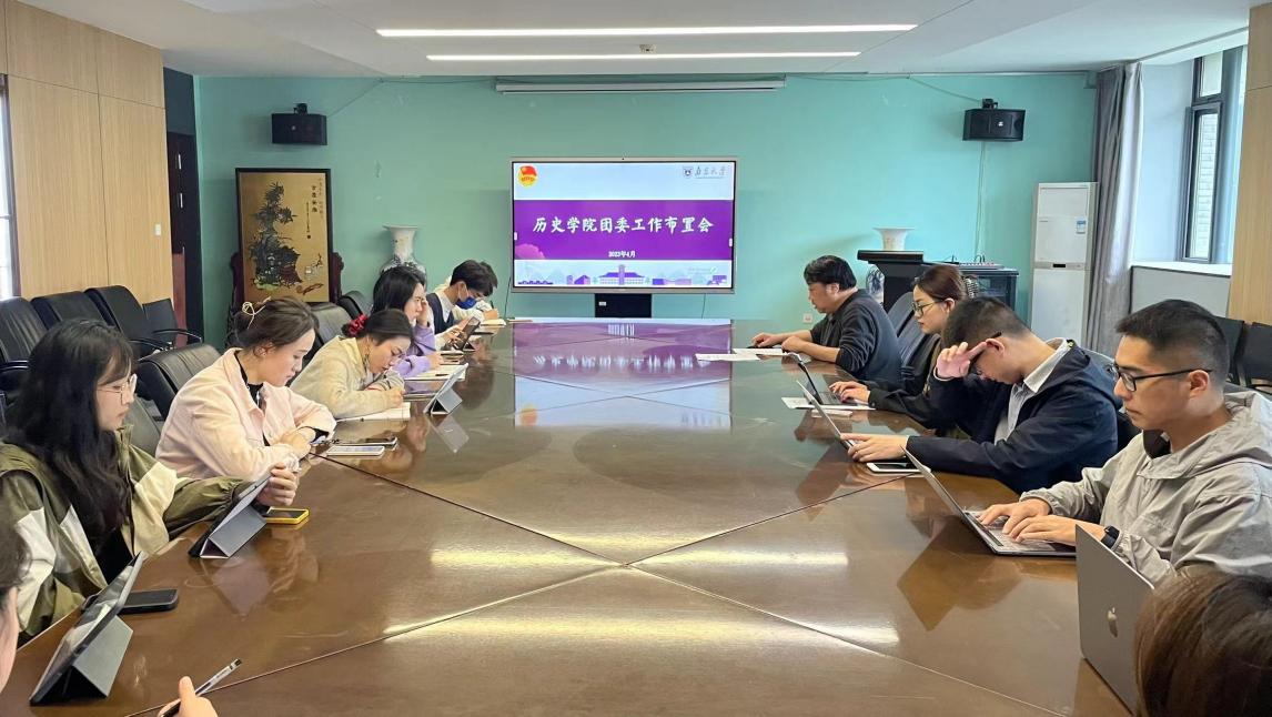 In order to implement the implementation plan of "Endeavour Action", and to give better play to the organizing power, leading power and service power of the Communist Youth League, the Youth League Committee of the School of History held a work layout meeting in Conference Room 223 on April 14, with the attendance of Yang Jun, Secretary of the Youth League Committee of the School of History, Tian Jie, undergraduate student counsellor, and Wang Enhui, postgraduate student counsellor. The meeting was attended by all year group secretary.